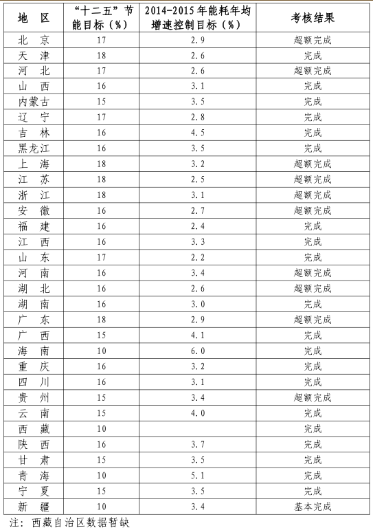 “十二五”各省節(jié)能目標(biāo)完成情況公告