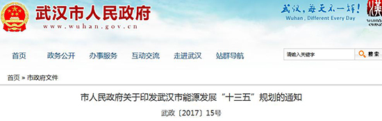 武漢市發布能源發展“十三五”規劃 堅持節能降耗