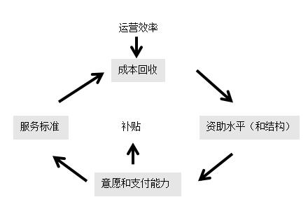 在PPP項目的資費設計中,需要平衡以下目標:(1)目標服務標準及相關成本;(2)公眾消費者的支付意愿及能力;(3)成本回收方式;(4)社會資本的經濟要求(投資利潤率);(5)對政府補貼的需求及得到的可能性。各因素的正確組合可以通過項目模型的重復優化來確定。資費設計循環過程如下圖所示:
