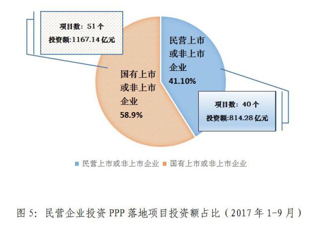 2017年9月,民營企業(yè)以聯(lián)合體牽頭方或者單獨(dú)作為社會(huì)資本方落地項(xiàng)目投資額206.95億元。2017年1-9月累計(jì)投資額814.28億元,占41.10%。