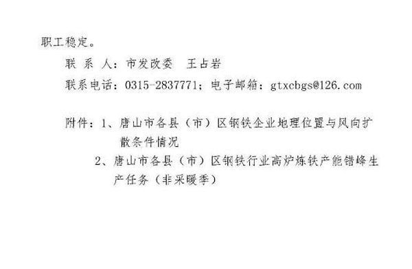 日前,《唐山市鋼鐵行業2018年非采暖季錯峰生產方案》經市政府同意,已正式下發。方案中明確了錯峰生產依據和原則,綜合考慮唐山市環境空氣質量現狀、鋼鐵企業所處區域和氣象條件,對全市鋼鐵企業實施非采暖季精準化、差異化錯峰生產。全文如下: