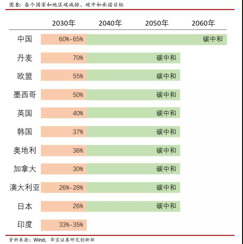 各個國家和地區(qū)碳減排、碳中和承諾目標(biāo):