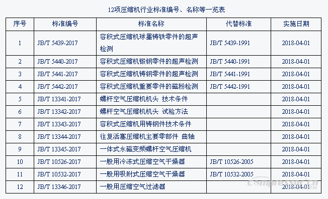 2017年第48號中華人民共和國工業(yè)和信息化部公告,工業(yè)和信息化部批準發(fā)布了壓縮機行業(yè)標準12項看具體內(nèi)容見下表。