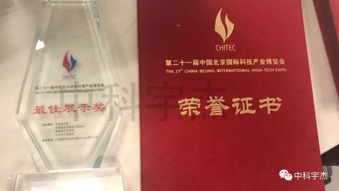 中科宇杰榮獲第二十一屆北京國際科技產業博覽會“最佳展示獎”
