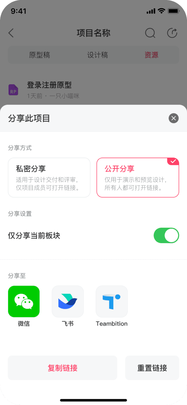 支持私密、公開兩種分享方式