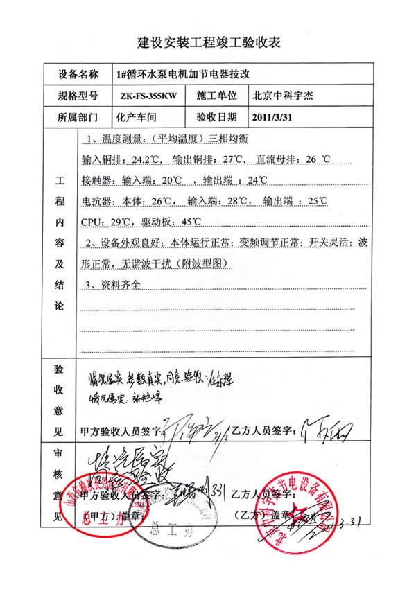 中科宇杰憑著十多年來的行業經驗,累積完成項目500多項,包括眾多國內外知名企業,如聯合利華、錦江集團垃圾發電廠、法國羅蓋特、美國通美晶體、印尼金安漿業、新安化工、中能硅業、太平洋恩利、全友家私、京燕水利、金川開發區等企業與機構,服務網點更延伸海外地區。平均節能率在15%-20%,最高節電率達56.7%,累積為用電企業節省電費過數億元。