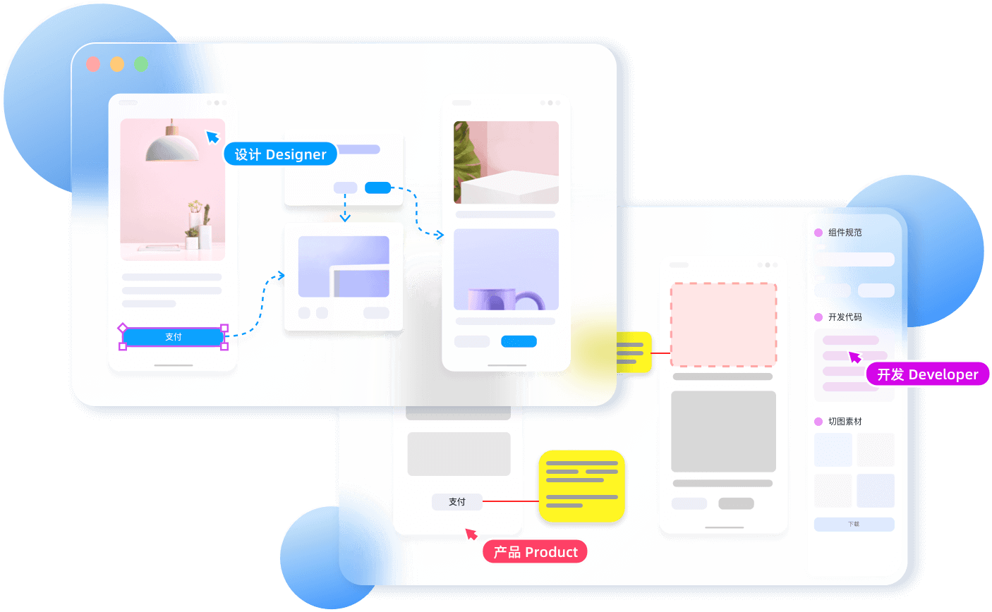 摹客3為產品經理和設計師中提供專屬的原型和UI模式,保證產品經理和設計師在協同時,可以保持各自原有的偏好和習慣,無需去強行適應對方的工作方式。