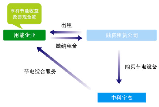 融資租賃是指租賃公司根據用電企業的需求,出資向中科宇杰購買智能節電設備,并租給用電企業使用,用電企業分期向中科宇杰支付租金,租金包含用電企業所節約的電費中,在租賃期內節電設備的所有權屬于租賃公司所有,用電企業只享有節電設備的使用權,租期屆滿,租金支付完畢并且用電企業根據《融資租賃合同》的約定履行完全部義務后,用電設備的所有權即轉歸用電企業所有。